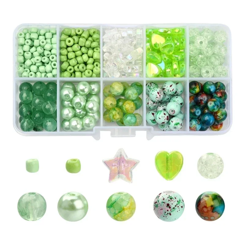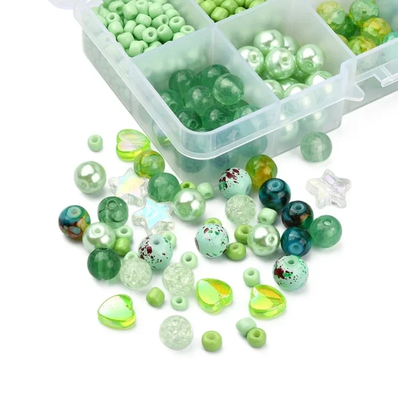 Acryl en glaskralen box Groen