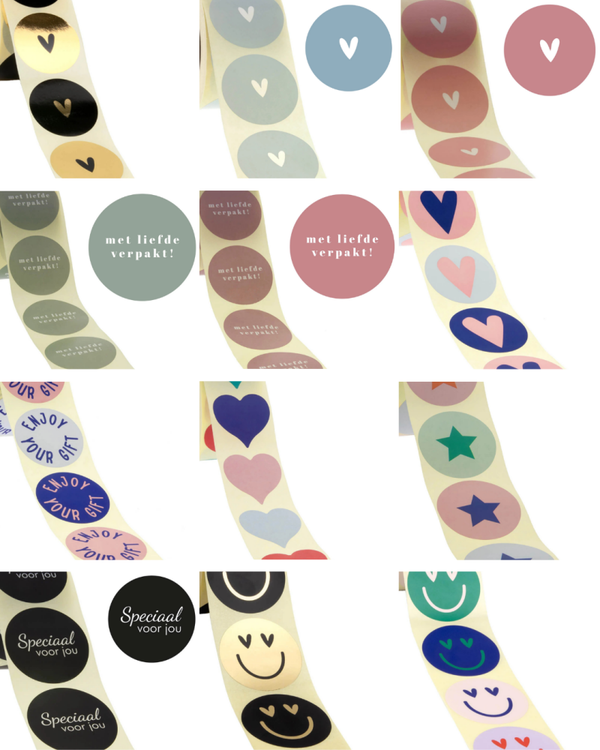 Een inpakset met totaal 65 stickers met een doorsnede van 4 en 5 cm en 40 kraftzakjes